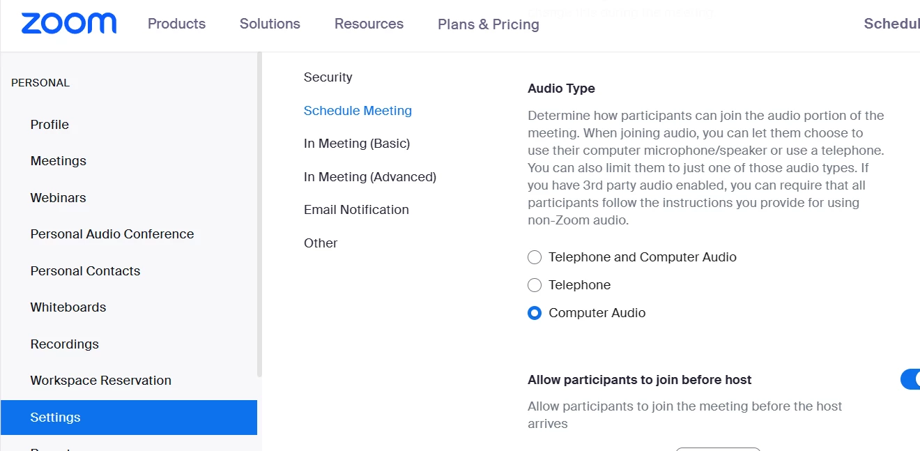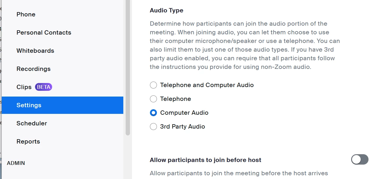 I set up to host a meeting and when I started the meeting it would not let anyone use their device audio. Wanted everyone to dial in.