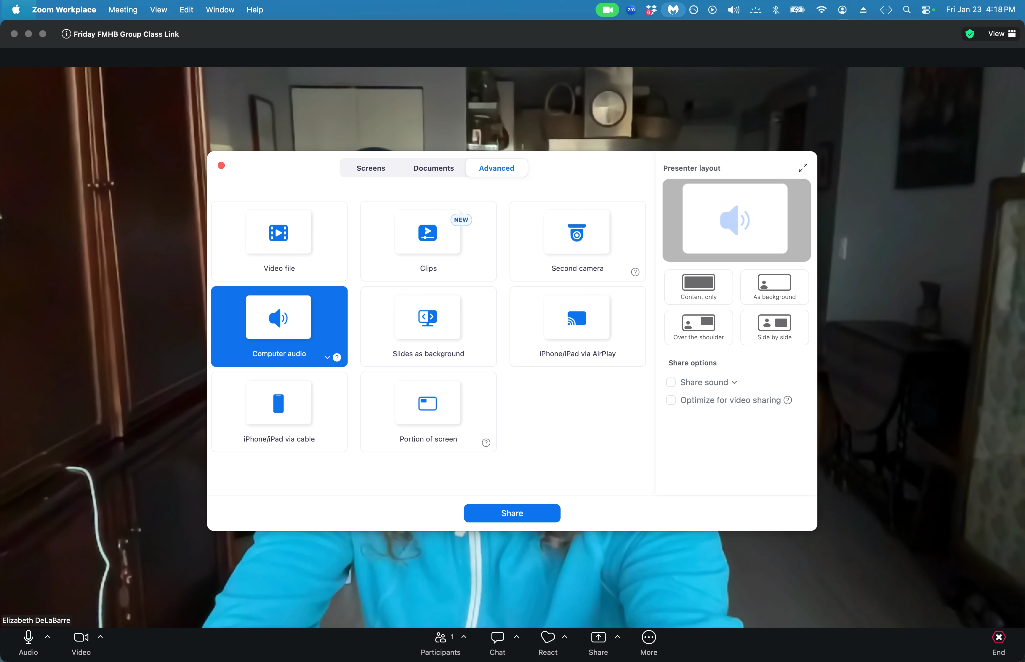 Hi, I teach a zoom movement class using a lapel mic and Apple music. I share audio coming from my macbook to which I have speakers attached. I used to be able to set the music volume for the meeting as separate from my system and ext. speaker volume and now I can’t. I need the music louder in my space (coming out of my speakers) so I can talk over it and still hear the beat for my movements.