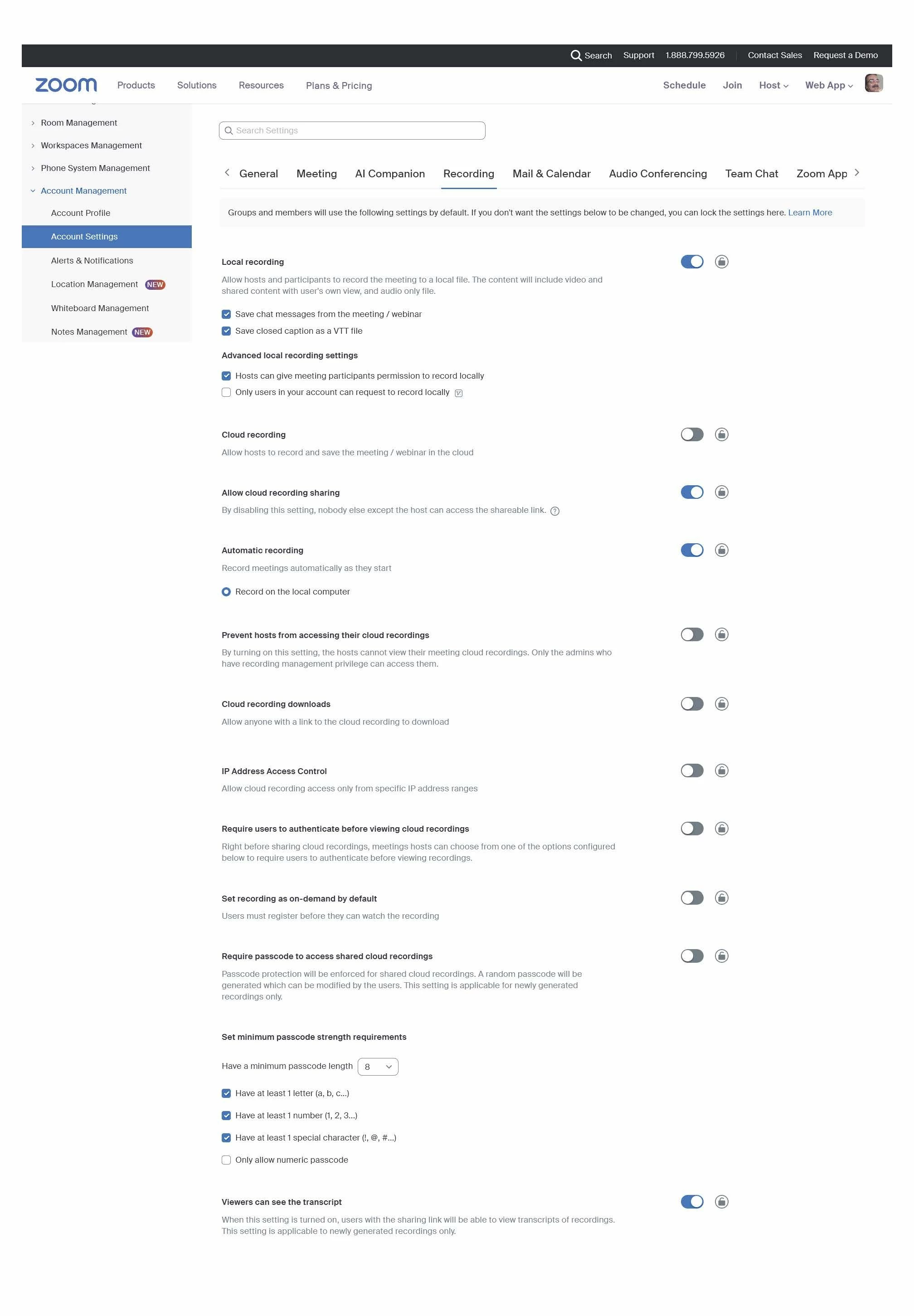I am trying to set up auto record to local computer and, although the recording starts with the meeting automatically, it records to the cloud. I have check the forums and docs and believe I have the recording settings set up correctly. I have attached a screen shot of my settings.