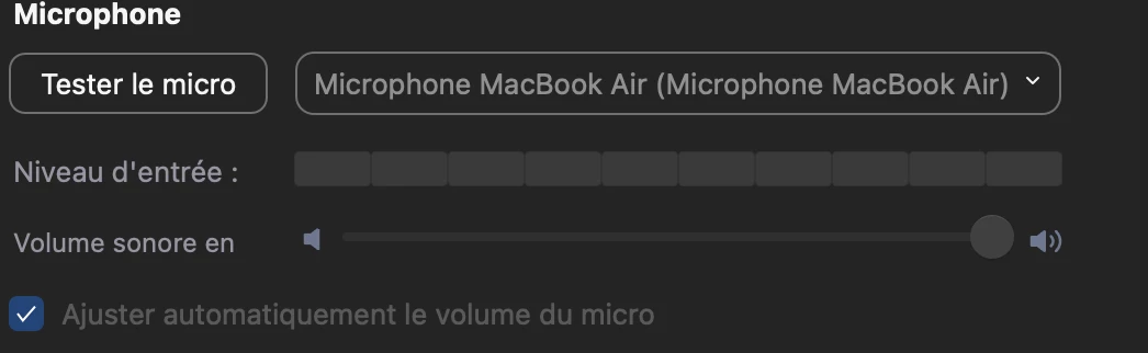 Rraphi_rNewcomerForum|Forum|3 years agoJune 3, 2022QuestionAutomatically adjust microphone volume zoom is greyForum|Forum|3 years agoJune 3, 20223 replies5 viewshi all,I have a problem.I can't modify this option on zoom: "Automatically adjust microphone volume " it's grey and i can click....someone can help me ?thanks a lot !
