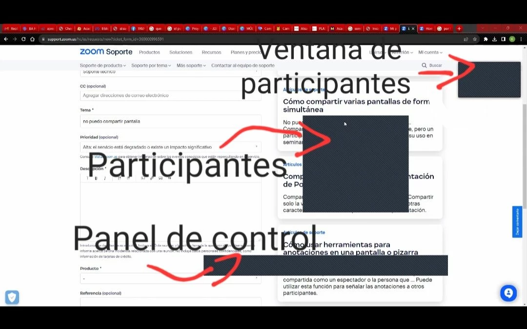 Hello, group, first time that I write here. I'm having trouble sharing a screen in a zoom meeting. Participants see obstructing black rectangles on the screen. I honestly don't know what to do anymore. Here I attach an image.