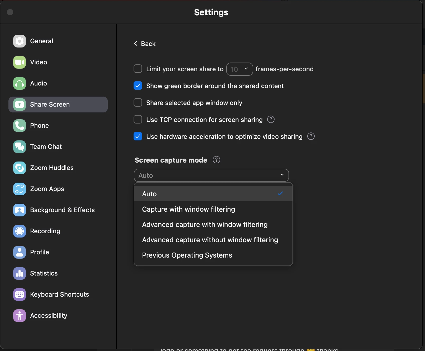 Black rectangles when sharing screen