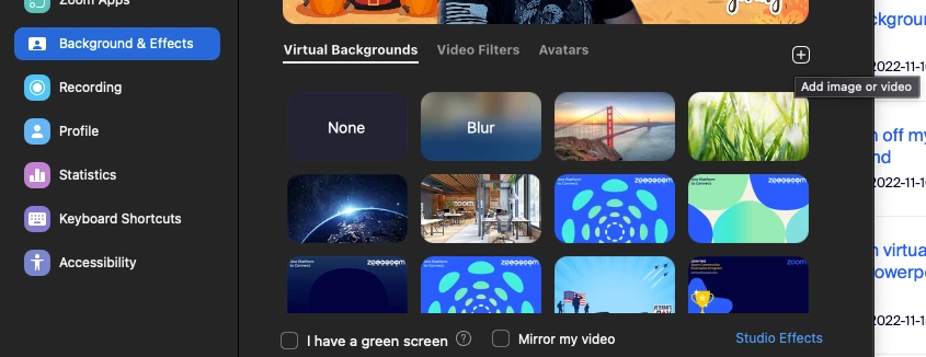 If you are a member of an organization and not the admin of your account, then there is a probability that your organization can lock these settings and not allow you to change them. Many business and enterprise customers block the ability of their members to change the background or use the filter options.