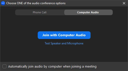 1. Create a new scheduled meeting using your personal meeting ID. Just make a dummy date/time with no one else invited. Make sure down the bottom in audio you have selected computer audio. It might bring up a prompt saying this will be applied to all future scheduled meetings on this ID - GREAT!