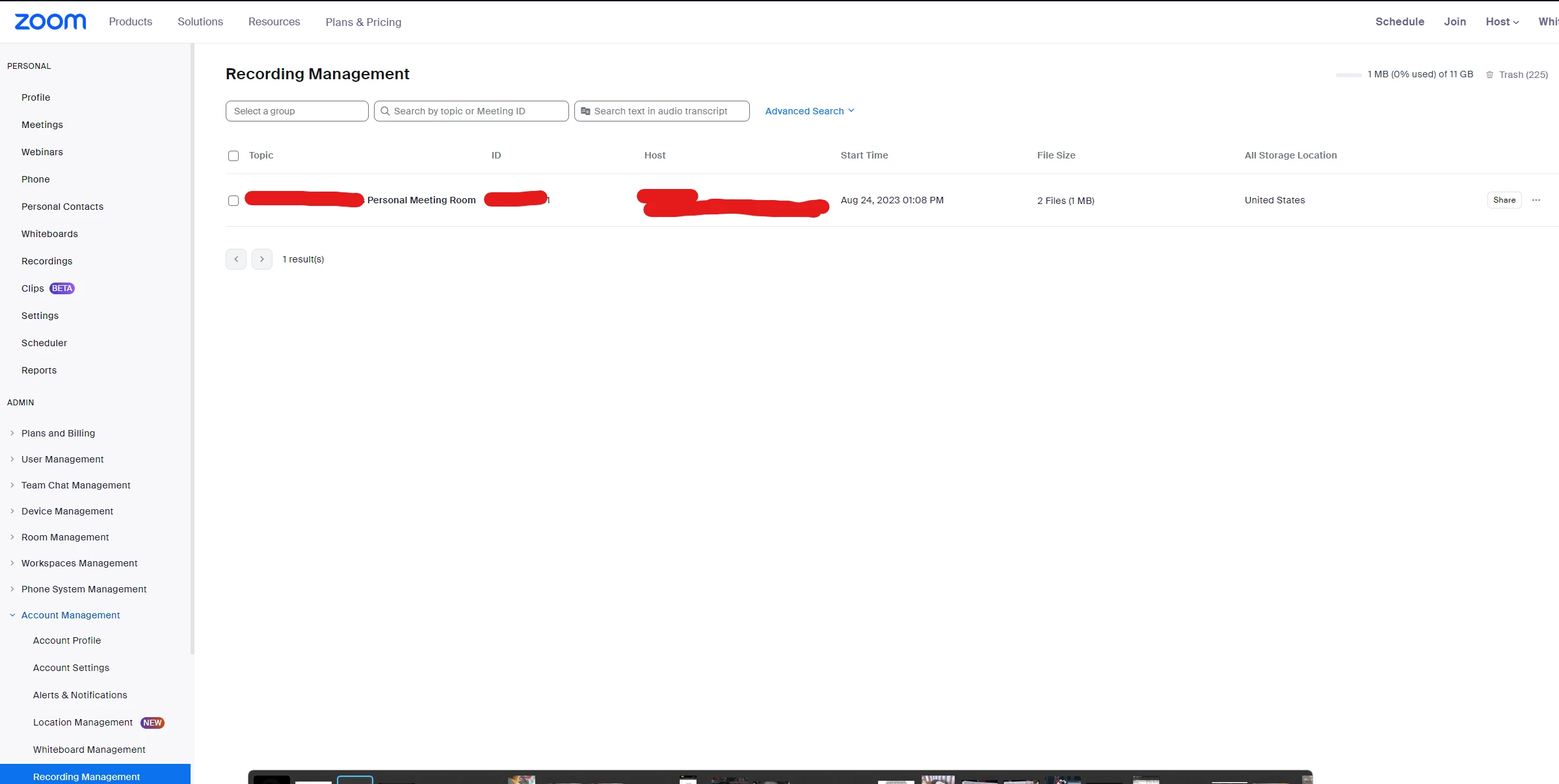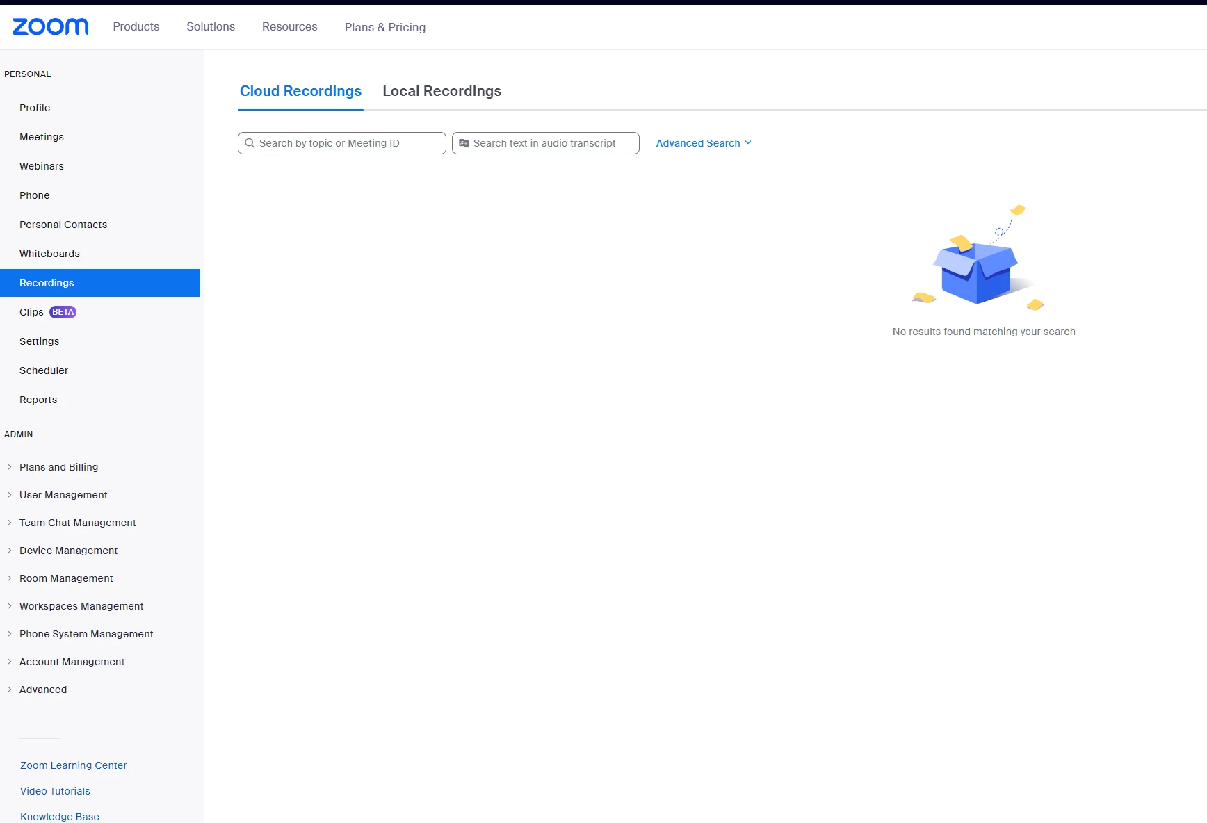 Cannot find cloud zoom room recordings via API