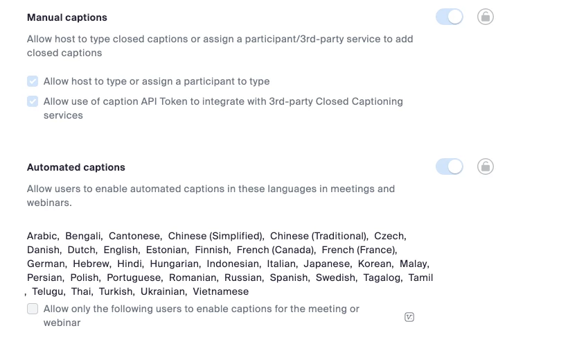 Under Admin - Account Management - Account Settings - Meeting I only see an option to turn on "manual captions." How do I enable automatic captions for the tenant?