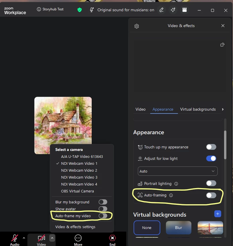 How do I turn off Center Stage video setting for PC? This is the new video feature that zooms in and out on your face as you move around while your camera is on during a Zoom video meeting.