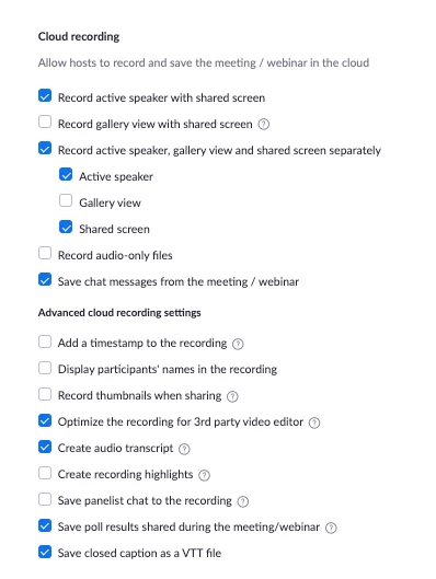 If I record on the cloud after making changes in the setting it will record GALLERY and SPEAKER, but NOT SPOTLIGHT