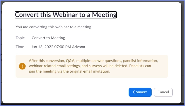Converting Webinar to Meeting