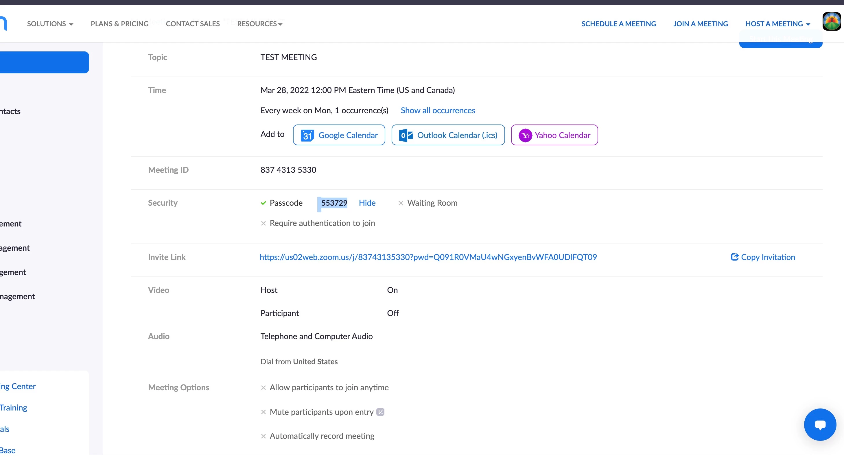 But for the next meeting, I want to send them an e-mail with the direct link, in case they cannot find the first e-mail or do not know it's the same button. So I was looking for the url to the meeting, but I can only find the link to the registration...