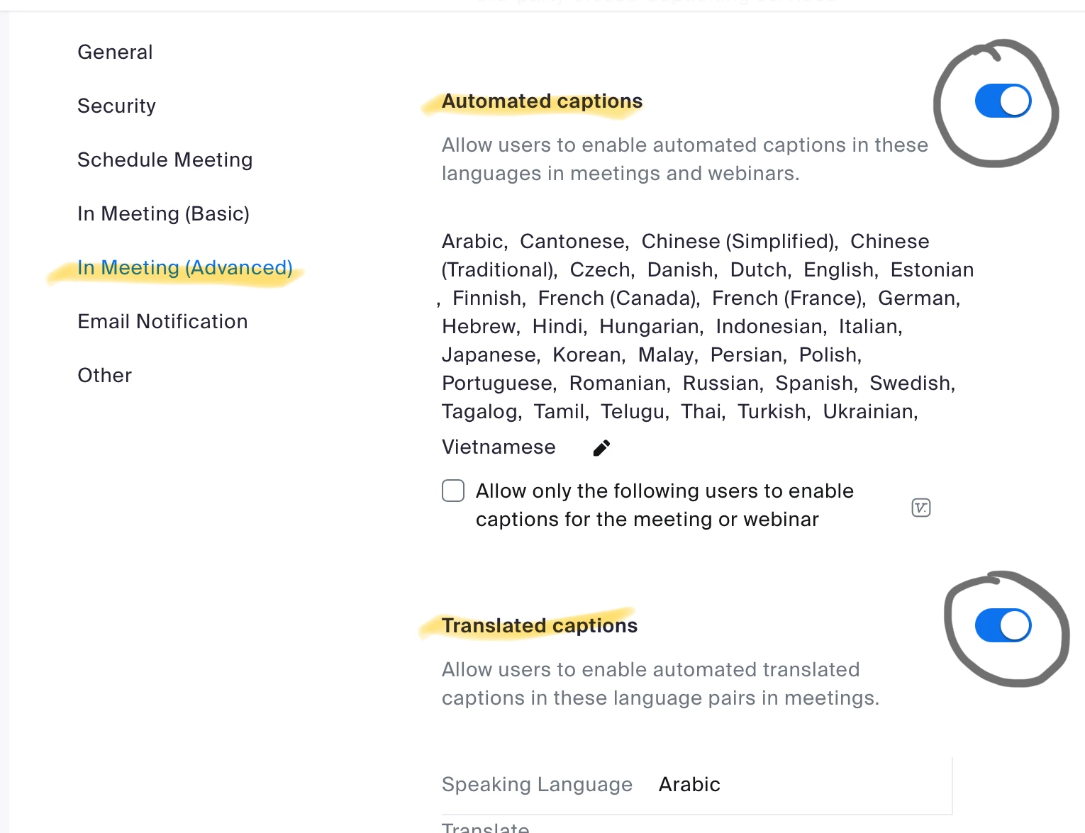 I teach reading and spelling to children over Zoom and I want the captions disabled. If a student puts captions on, they might see the spelling of what I'm saying plus it distracts them. I know I can disable them after starting a meeting, but I have a different student every hour and I want to disable them BEFORE meetings start. Is there a way for me to do that?