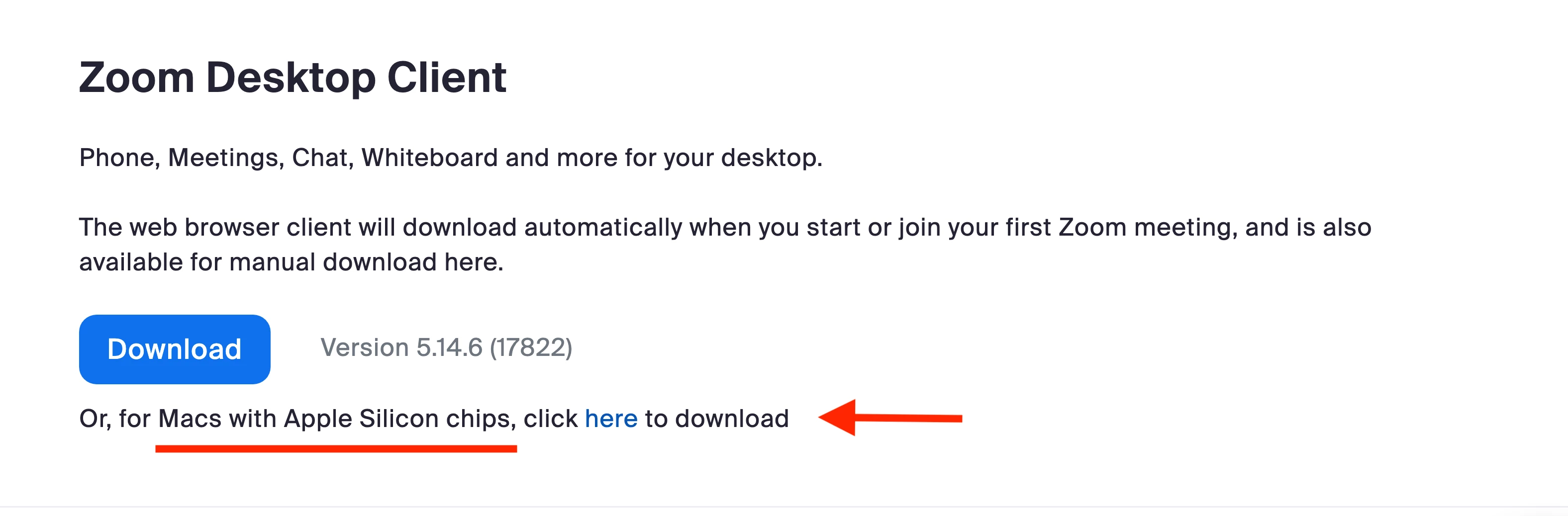 "Or, for Macs with Apple Silicon chips, click here to download"