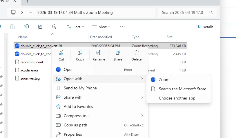 I have plenty of storage on my pc and I have made sure to ensure the ‘open with’ has been done with Zoom etc as per another video response I saw.