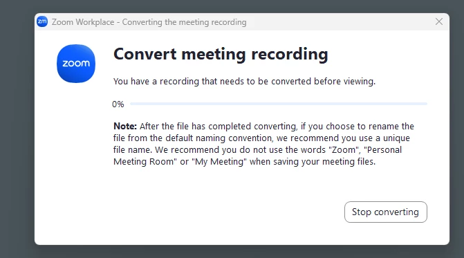 It was recorded locally to my computer and the ‘Conversion’ is just permanently stuck at 0%.
