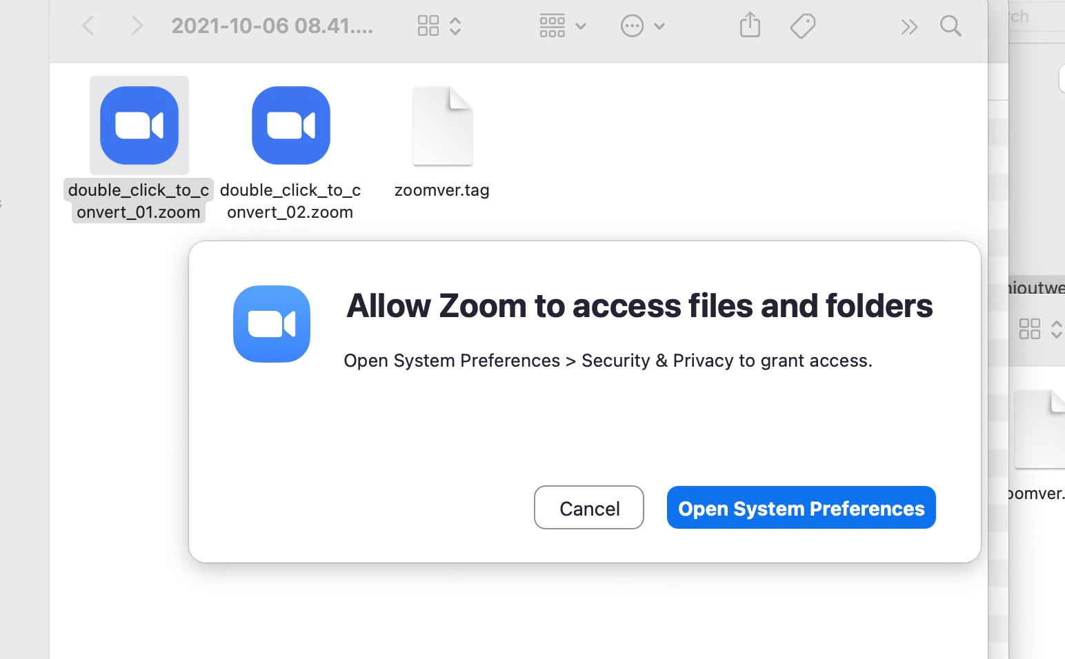 My Zoom meetings used to convert themselves when I ended my meetings. If they didn't, I could always convert the file with a double click, but now I keep getting the message below. Is it Zoom or Mac Big Sur 11.6???? This is what I've tried:
