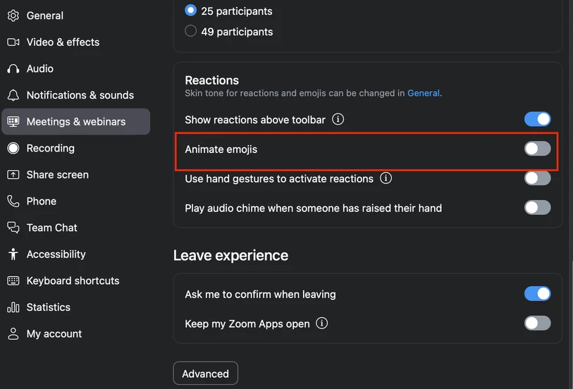 Is there a way to turn off the floating emojis as an attendee. I realize some people might like this, howevr to me, it's annoying and distracting from the lesson/meeting.