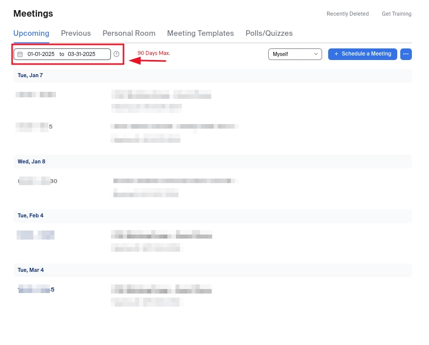 Suddenly we can no longer see future Zoom meetings beyond a couple of months ahead - I have just put one in for July but I cannot see it. Why can't I just arrow through and see ALL my meetings.