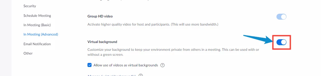 If you are referring to how to use virtual background, make sure that the virtual background is enabled in your settings.