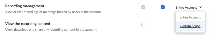 Can a group admin have access to recording management for their group without being an admin on the entire account?