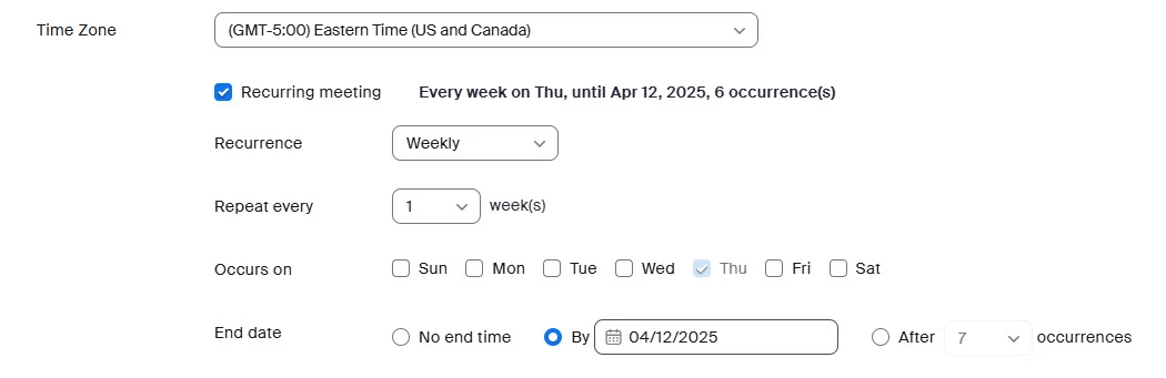 Help with feature on recurring meeting.