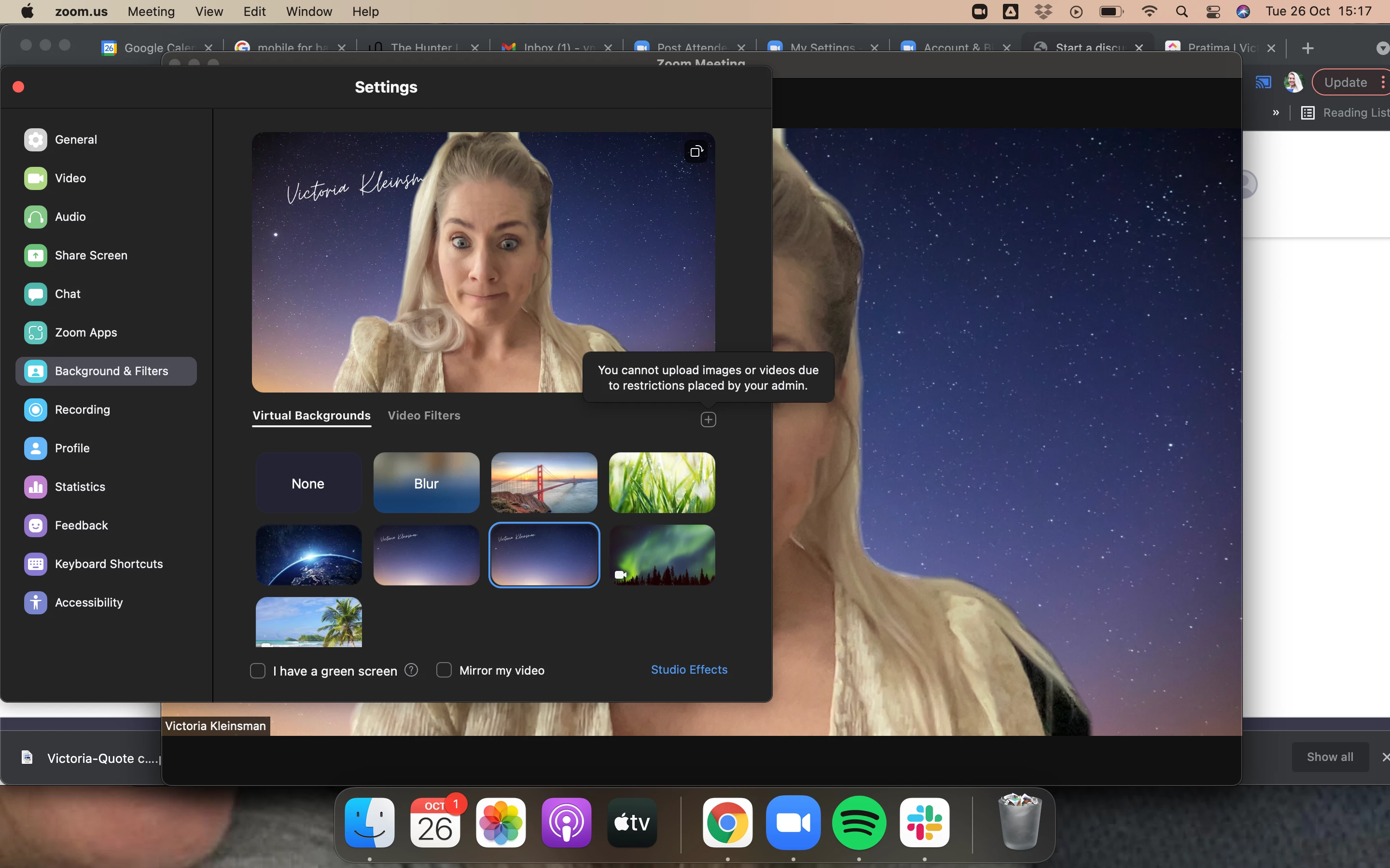 Please can someone help me? I am trying to add virtual backgrounds to zoom yet it is saying that the admin has not allowed this... I am the admin and the owner of my zoom account. I need to be able to use specific backgrounds for my call tomorrow but I cannot add any new ones. I can't find an email for Zoom or someone to talk to to help me.