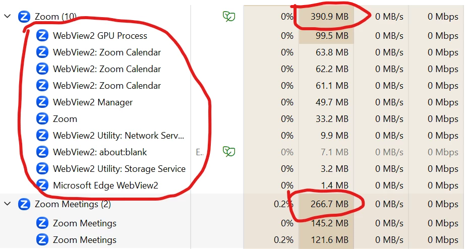 I have disabled all features related to calendar, email, whiteboard, etc. in my Zoom account and noticed that several services are still running in background (iFrames probably that are running somewhere):
