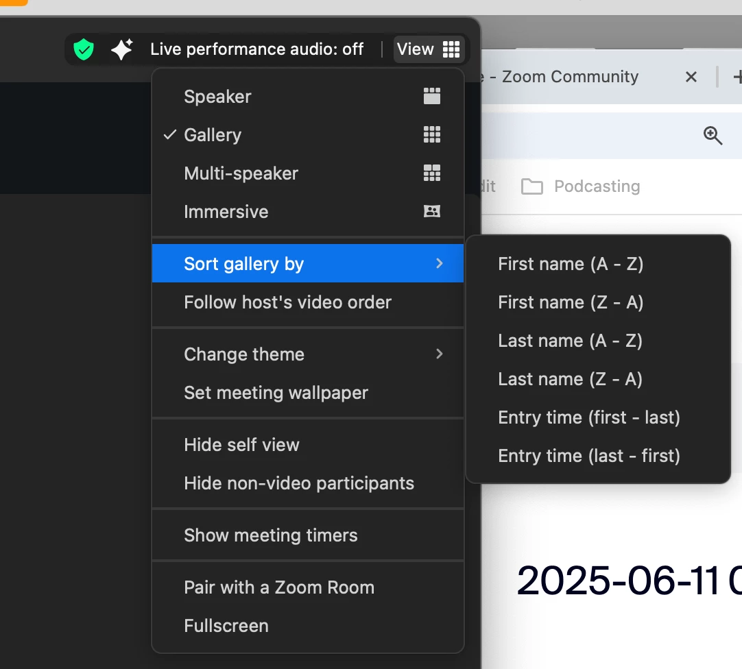 I often am in zoom meetings with 10-75 people. When I am in the gallery view, I would like to easily and quickly organize the order of the video participants according to various options, such as: