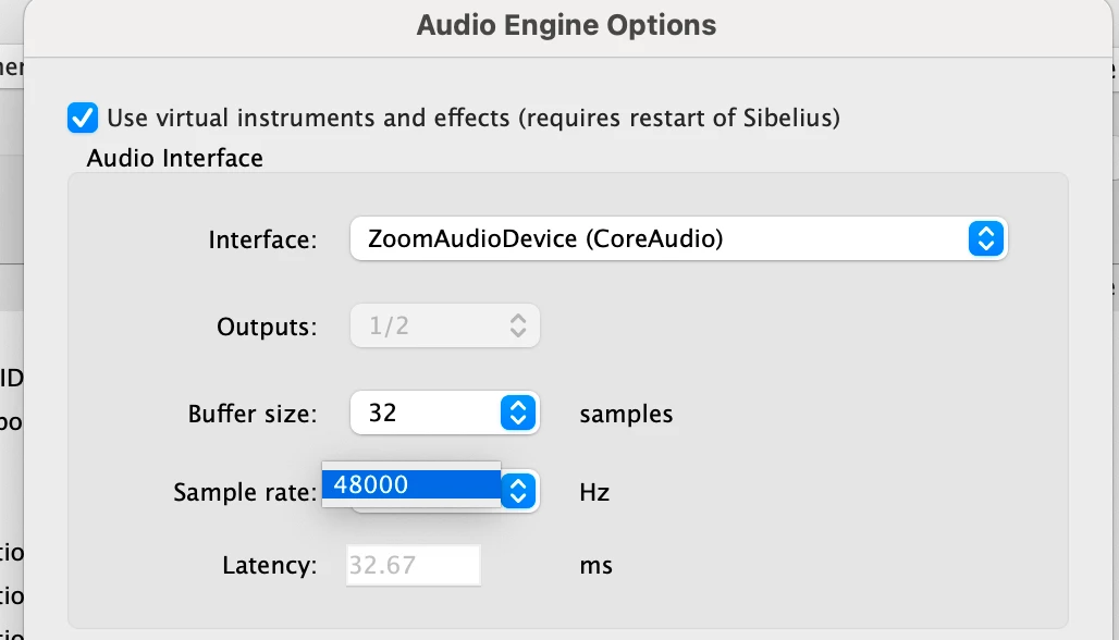 The reason for my wanting it at 44.1 kHz frequency is to prevent incompatibility with DAW settings for clients requiring their projects to run at 44.1 kHz, e.g. I cannot screenshare / audioshare Sibelius scorewriter and Cubase DAW at the same time as Zoom without compatibility flagging. Changing the frequency to 48 kHz makes the audio samples play back at a higher pitch, and can also result in a recalculation of root samples.