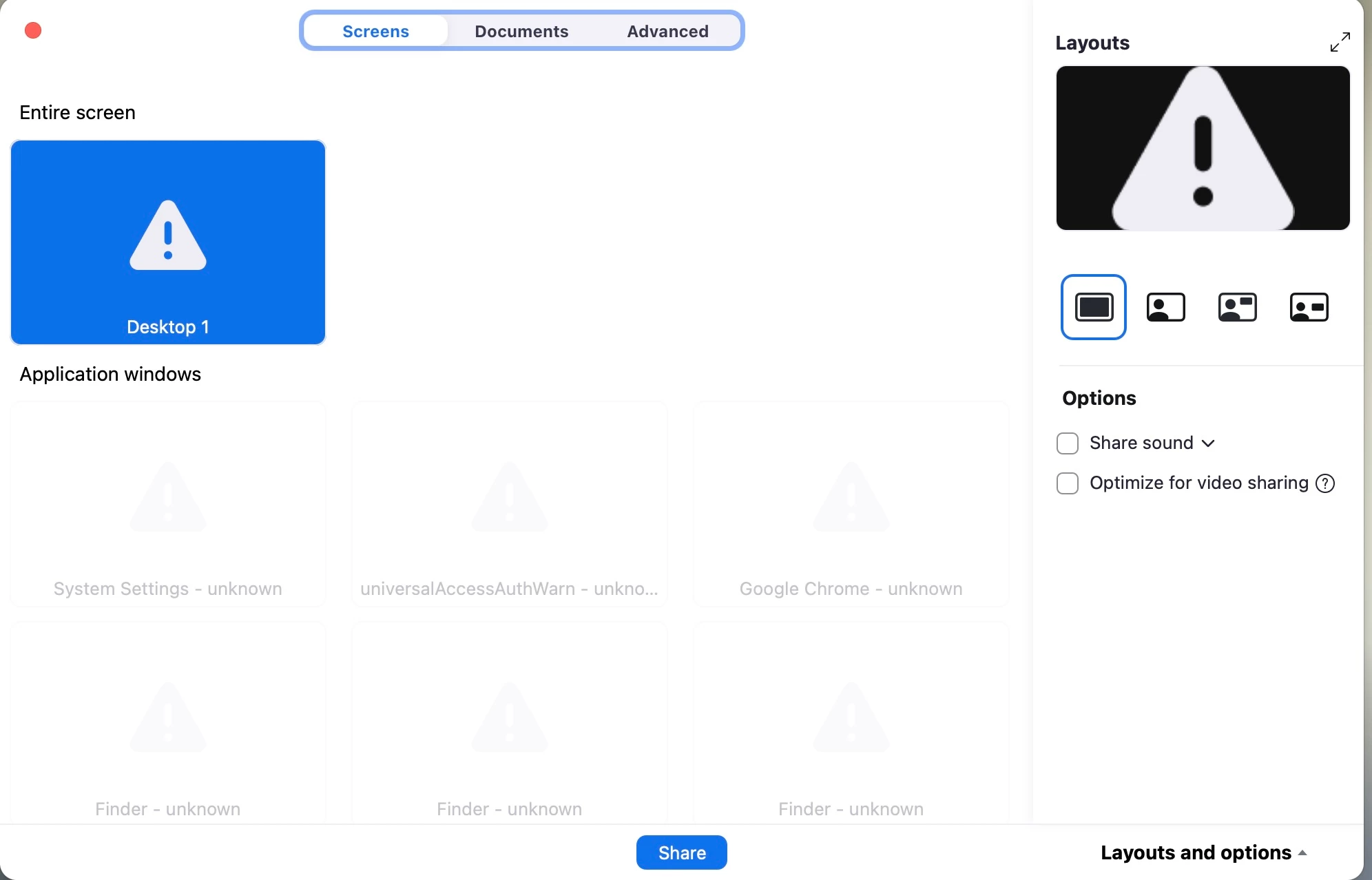 I can't share my screen when I am a host