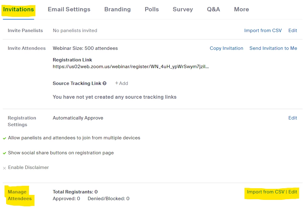 My company has hired a service provider to provide a Zoom webinar service. The service told me that the registrant import function is no longer available for attendees but only penalists. Is that true?