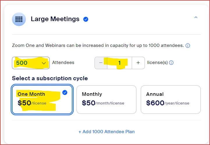 I'm not sure if my meeting will actually go over 100 until it has started. If I add-on large meeting while in session will the capacity increase?