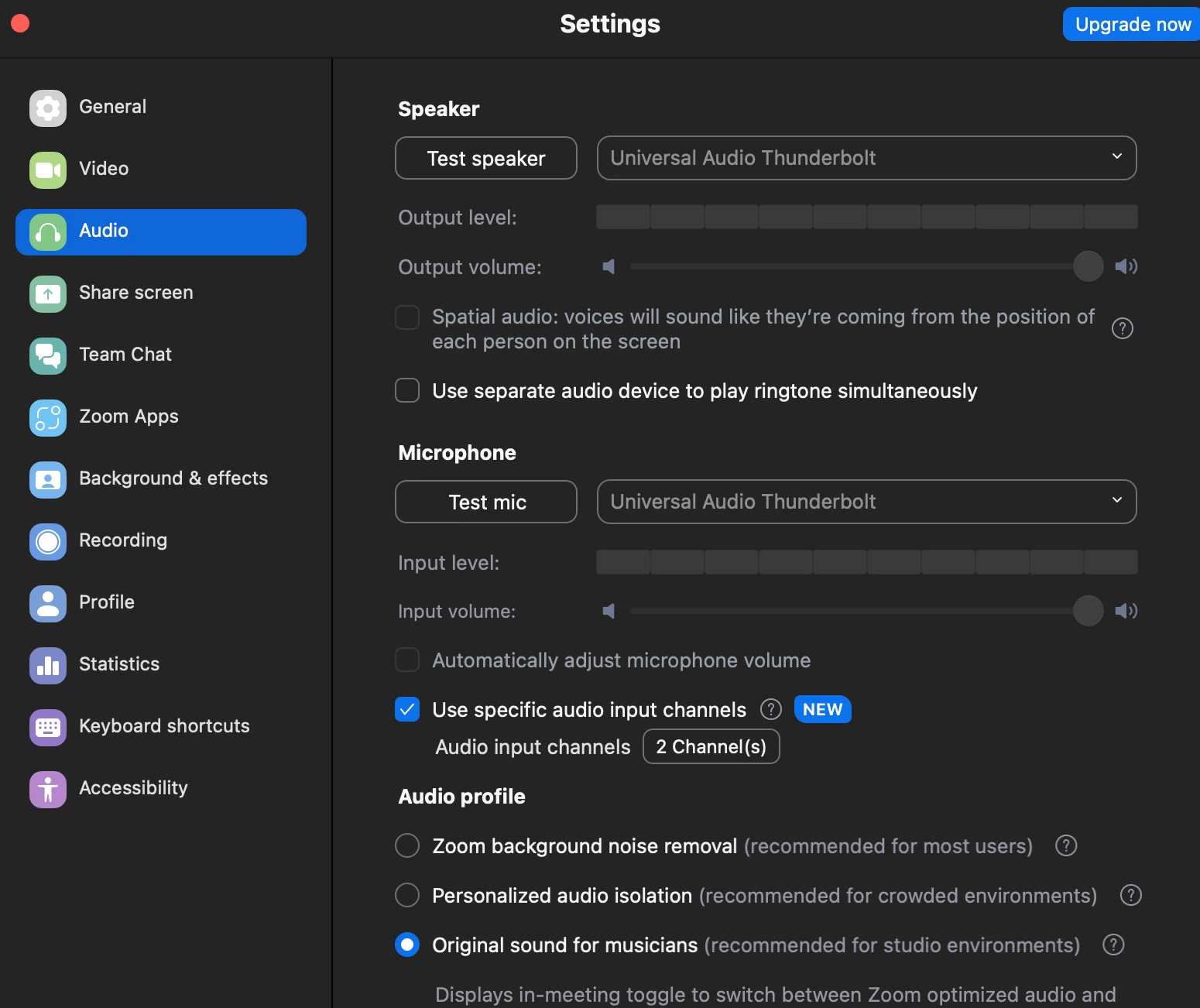 My music partner and i have been enjyoing playing together over zoom using live performance audio mode. We both use audio interfaces and mics during the sessions and all the audio from the mics is transmitting well. However, neither of us is able to hear the other play midi instruments in Logic Pro. In 'original sound for musicians' mode this was not a problem.