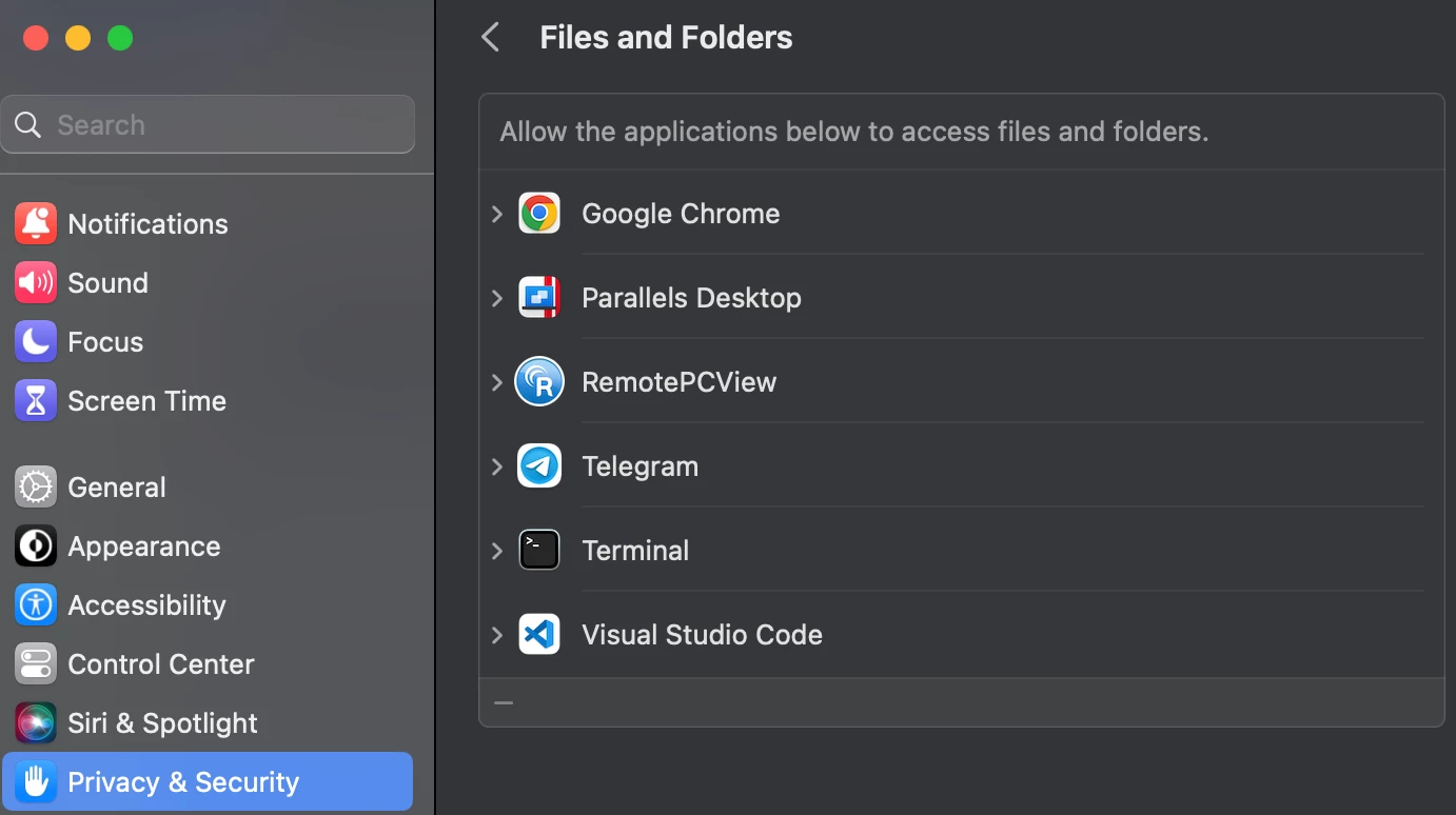 For some reason there is no possible way for me to turn on file sharing through zoom. I've followed every single bit of advice but it's just not there to select the option. Here is a screen shot for proof. It is NOT located under settings/privacy & security/files & folders