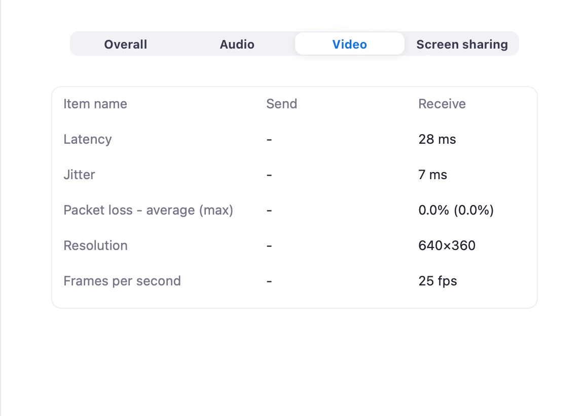 -The resolution on the meeting can start lower and fluctuate when the meeting is started as Zoom takes into account hardware, setup, bandwidth, active speaker, full screen, etc.