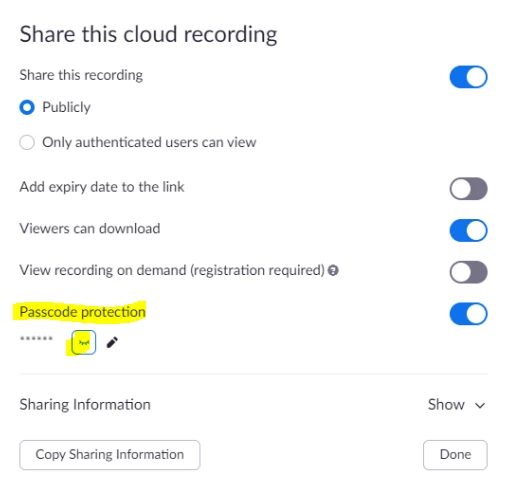 A few of my members are abroad. They all have the "shareable link" from my class recordings. One member cannot open it ,asks for a password. The "old" way to send the link had a password in black lettering. This new option just has the shareable link. She cannot open any of them, but the other 2 members can. I don't know what to tell her!! And I went to the email I sent her and I could open the link.