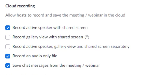 If you are Cloud recording, you have more options for video (but still not each participant) - but in the Cloud you cannot record separate audio tracks. https://zoom.us/profile/setting?tab=recording See second screen shot.