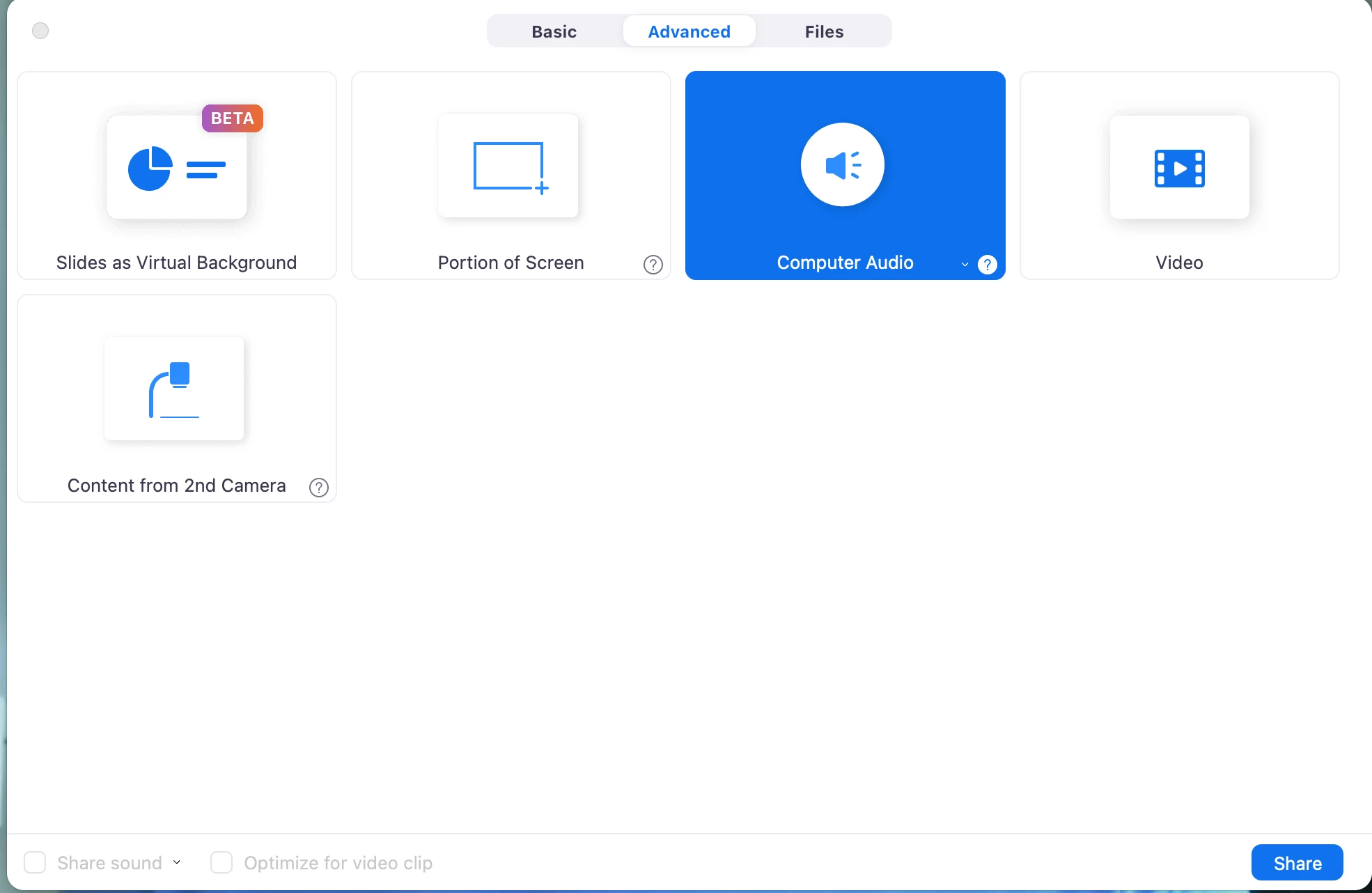 The reason your background music is not being picked is due to Zoom's echo cancellation and background noise suppression.