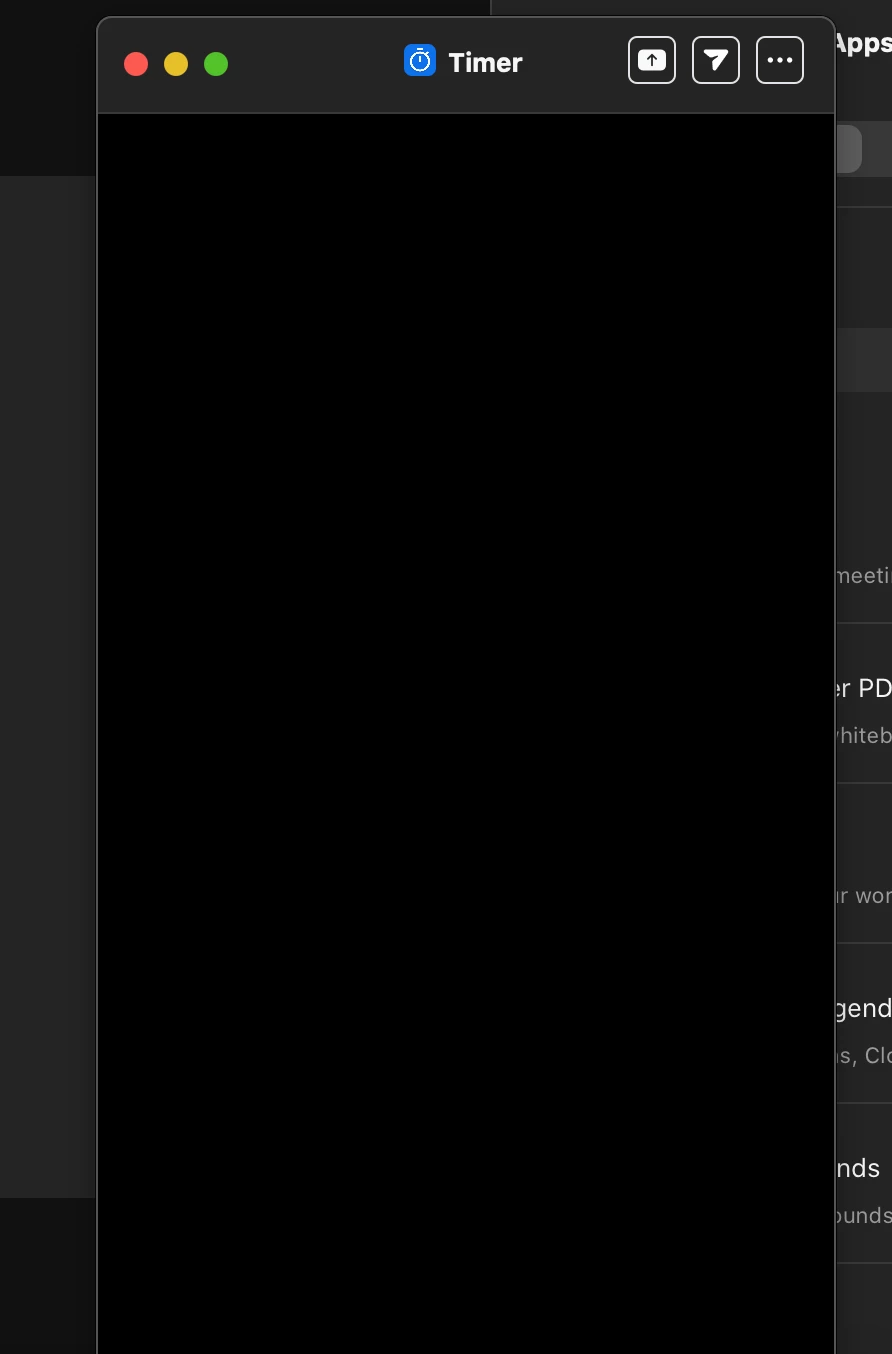 The Zoom timer app is not loading after a meeting has started. When I click on the app and select the timer option, I see a black screen. I am using a MacBook Pro. I am able to launch the app outside of the meeting window, but it doesn't work properly within the meeting.