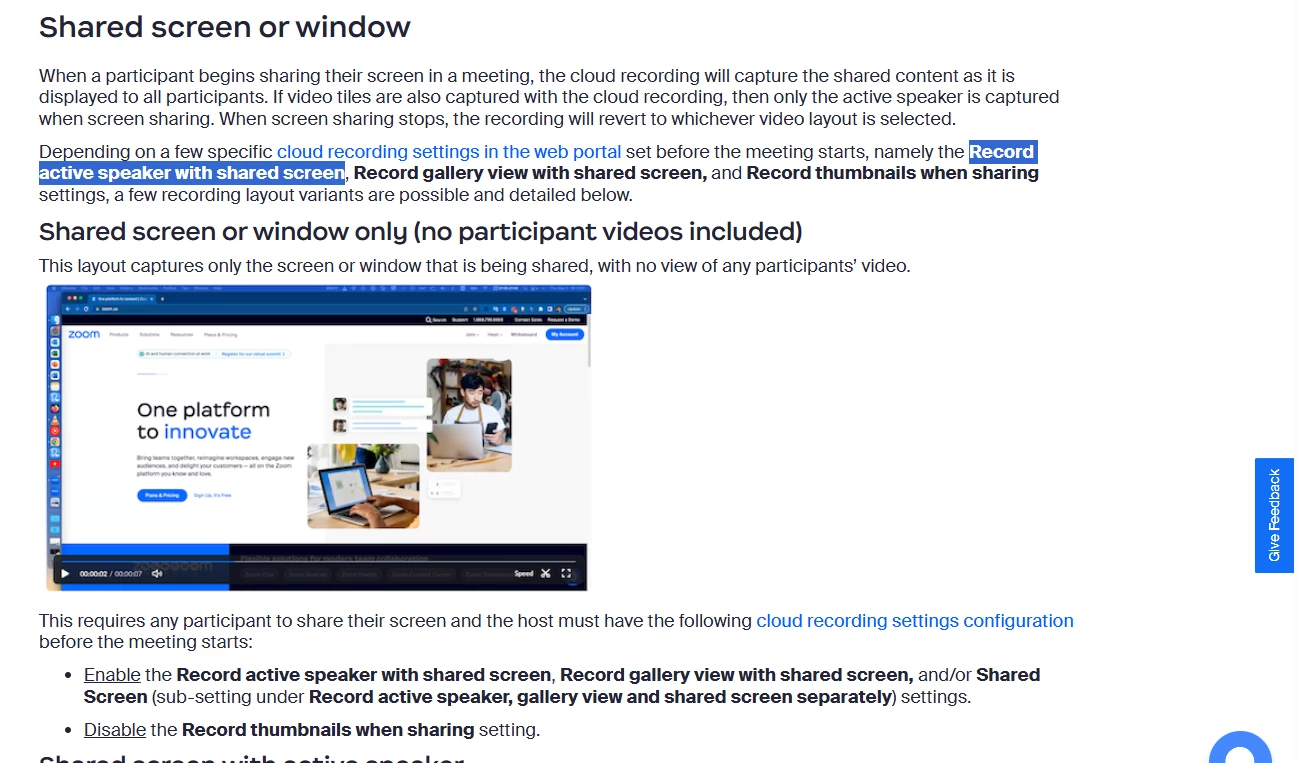 Navigate to the Recording tab, enable “Record video during screen sharing" and "Record active speaker with shared screen". By doing so, you'll ensure that your video is included in the recording.