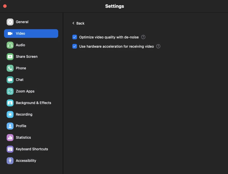 Your screen capture is not like mine at all. I do not see Settings with Video listed clearly like yours. I thought I had the latest version of Zoom. I work on a Mac. Perhaps that's why?