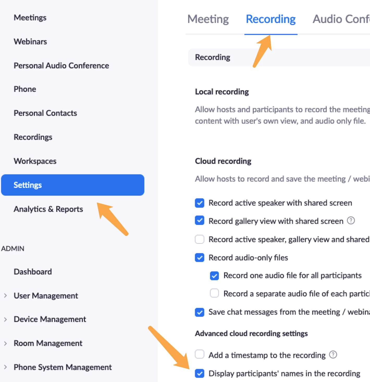 I updated my Zoom client and fond out that now in the recorded meetings there is always the names of the participants under their images, no matter if a abilitate or not the corresponding option in the preferences.