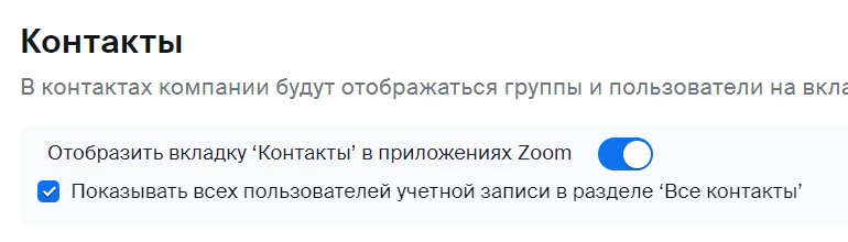 Недавно приобрели для организации лицензию зум. Добавили в веб версии контакты: