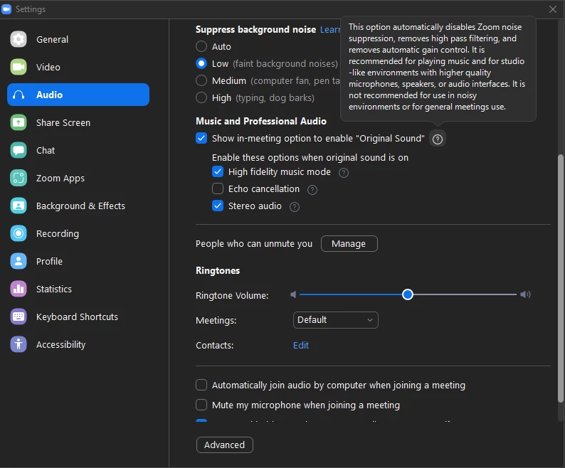 We have to have background suppression set to low to enable the morse code to be heard and all our mics and speakers are working fine when we join the meeting, it is only after screens have been shared that the problems appear.