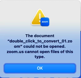 I recorded a meeting on my computer. When I try to open the recording, I receive an error message, "The document double_click_to_covert_01.zoom.us cannot open files of this type." How can I open the recording?