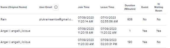 See the screenshots other participants doesn't have email on the reports.