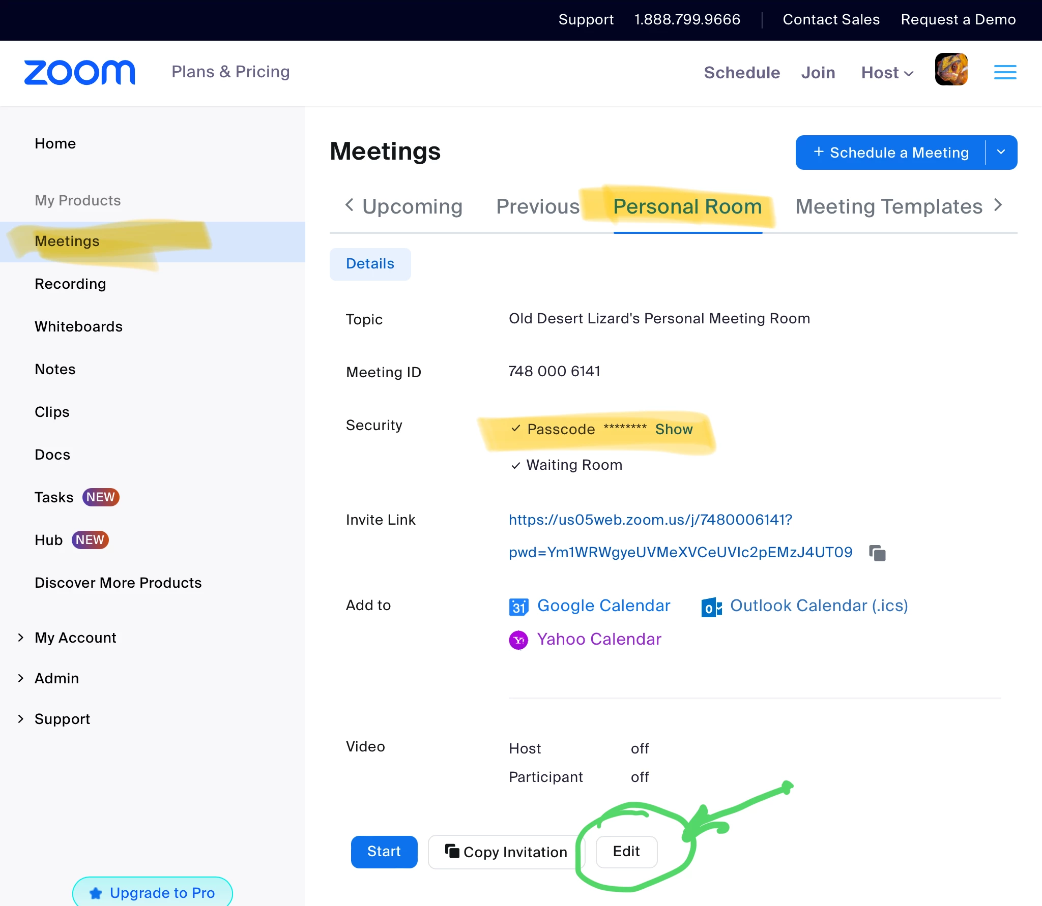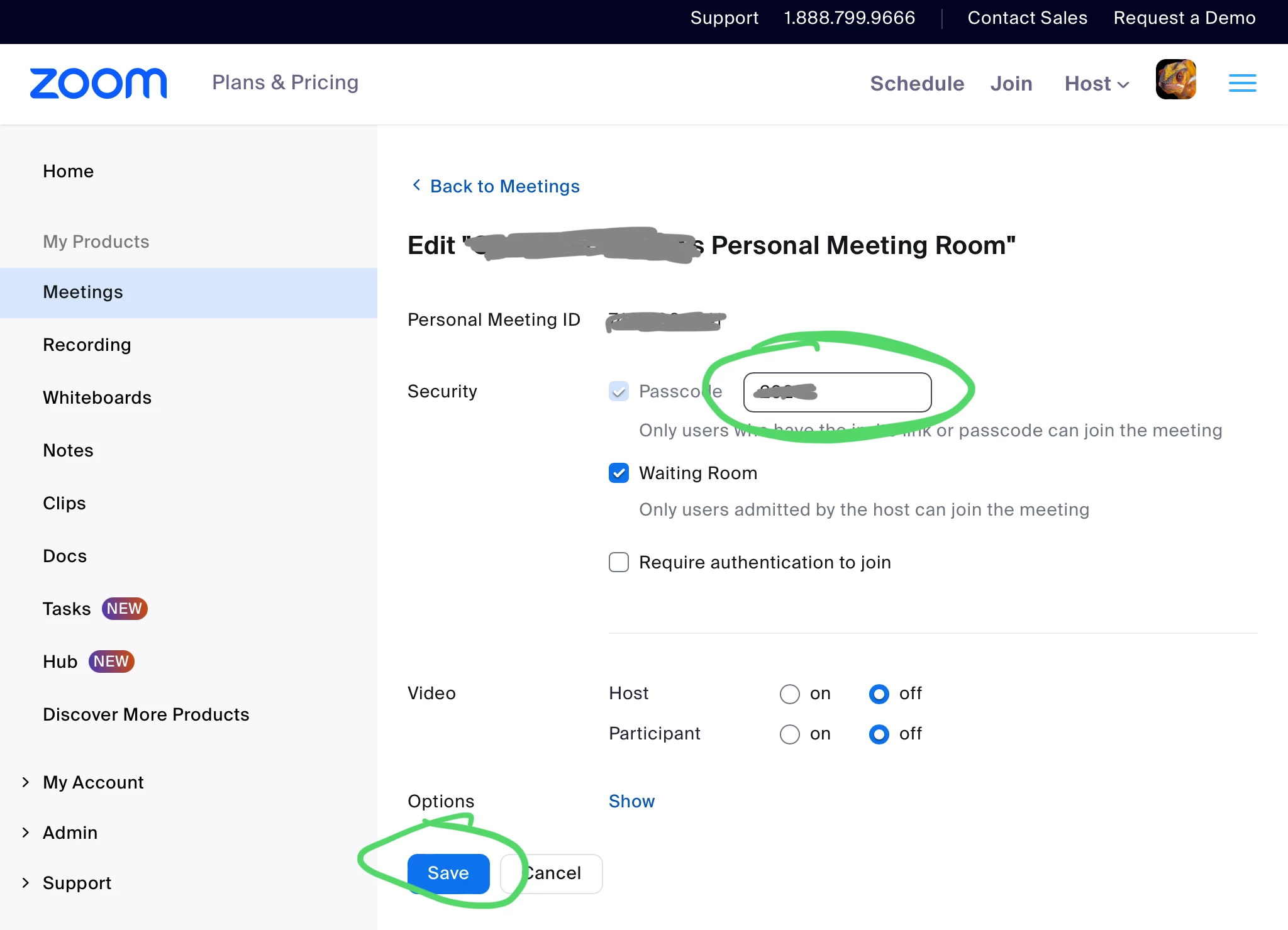 I have 2 basic accounts, and I am the owner on both. I am trying to change my meeting passcode, but it's locked by admin on both accounts.
