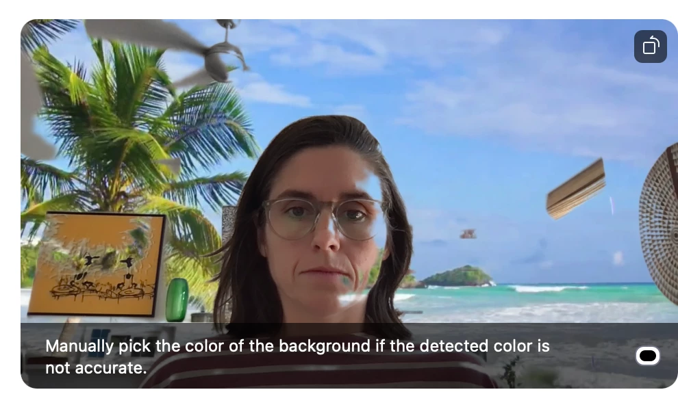 Whenever I try to use a virtual background, it is patchy and doesn't cover much of my room. See image, where you can still see my art and fan and part of my face is covered.