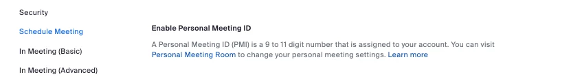 Personal Meeting ID Disabled