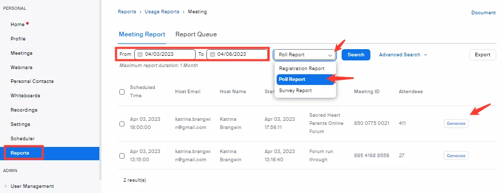I hosted a large meeting and launched a pre-saved poll, watched as everyone participated in the poll successfully but now can't find the results report anywhere. I saw 29 people registered responses. Could it be because I accessed the meeting through outlook which is attached to a different email? But zoom still recognised me as the host and let me launch the poll so am confused! When I go onto the zoom web portal and look at my previous meetings it says poll "not launched". Be grateful if anyone has any ideas...