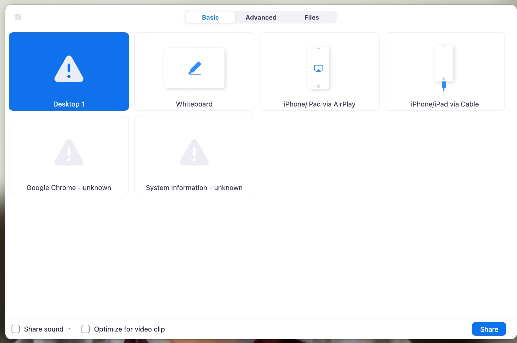 Problem w/ screen sharing